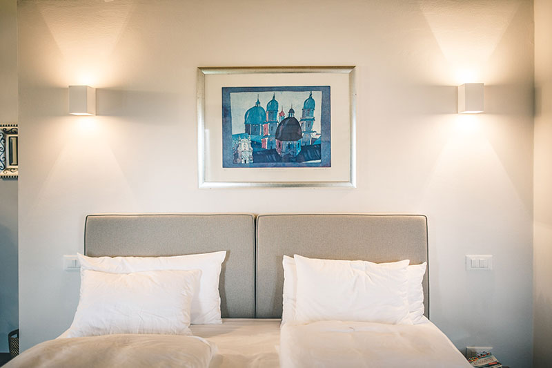 Unser Convento ist ein wunderschönes und großzügig geschnittenes Appartement, welches sogar mit einer kleinen eigenen Küchenzeile [„Cucinette“] ausgestattet ist. Der Zuschnitt von Schlaf- und Aufenthaltsbereich sowie dem durch Glastüren begehbaren und hochmodernen Bad ist intelligent und gefällig gestaltet und lässt auch beim anspruchsvollen Gast nichts vermissen. Der Blick aus dem Raum Convento richtet sich auf den Hof des Landguts und auf das Kloster Santa Vittoria.